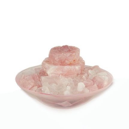 Edelsteinbrunnen Rose Rosenquarz VianaEdelsteinbrunnen bestehend aus 3 Rosenquarz Brocken und ,,Peony" Glasschale