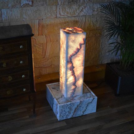 Marmor Lichtsäule LunaSölker Marmor Natursteinbrunnen als Wassersäule Höhe ca. 100cm - Original Objekt