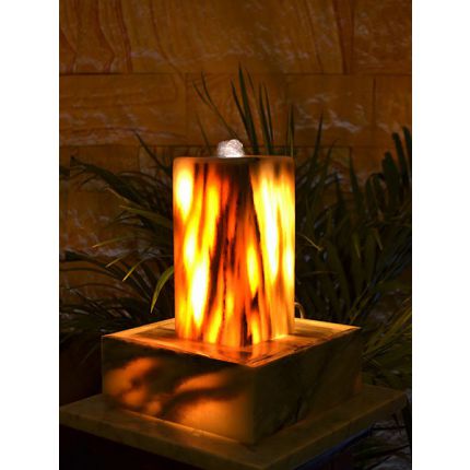Edelsteinbrunnen Evita Onyx RotTischbrunnen bestehend aus Rotem Onyx Quellstein mit Glasschale Type Roxana